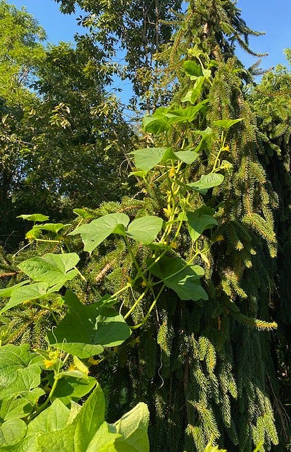 This morning, I pulled down my cucumber to make way for fall lettuce, turnips, and cabbage. Yes, pulled down, for the wet spring ignited passion in this $3 potted vegetable and she climbed to the top of my tortuosa pine.